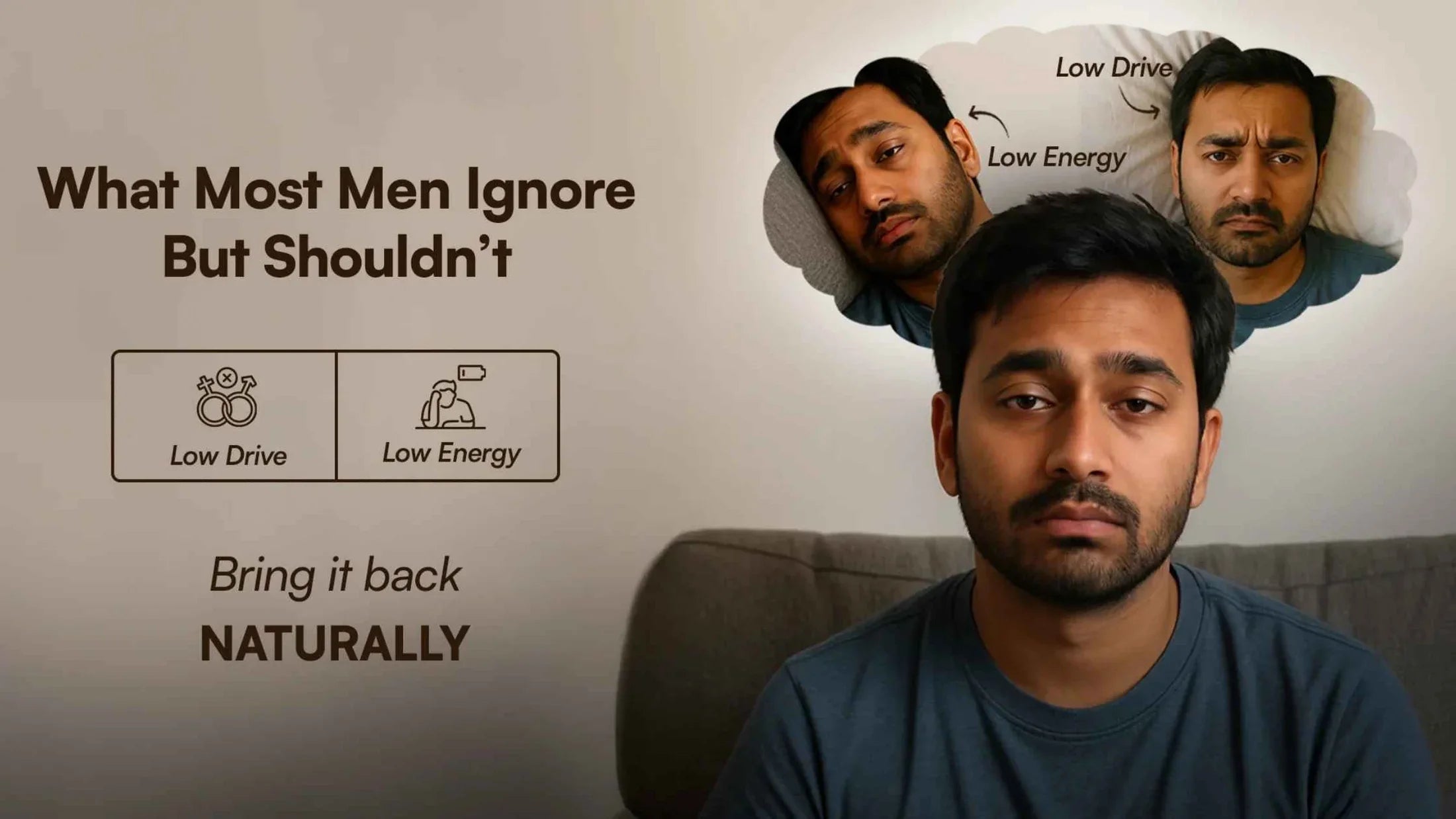 Look for multivitamins that include Vitamin D, B12, Zinc, Magnesium, and Ashwagandha. These nutrients boost energy, enhance testosterone levels, improve mood, and strengthen immunity. Premium options like Rasayanam Multivitamin combine Ayurvedic herbs (Ashwagandha, Arjuna, Musli) with essential vitamins and minerals for holistic wellness.