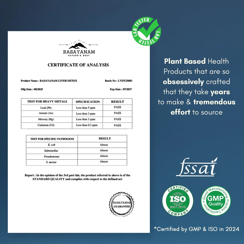 A: No supplement can replace healthy choices. Rasayanam Liver Detox supports your liver, but it works best when combined with balanced eating and an active lifestyle.