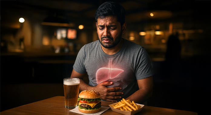 These daily lifestyle stressors quietly build up, leaving your liver struggling to cope – that often show up as tiredness, bloating, acidity, poor appetite, or digestive issues.