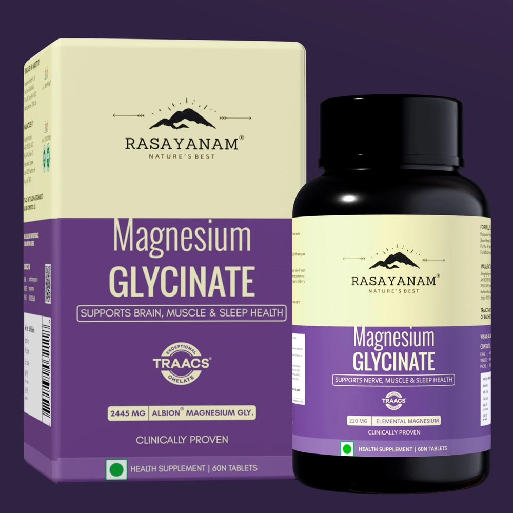 Rasayanam Magnesium Glycinate uses a highly bioavailable and gentle form of magnesium for better absorption and digestion, helping your muscles relax better and recover faster.