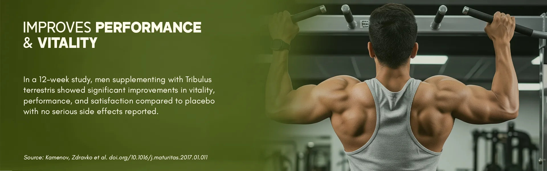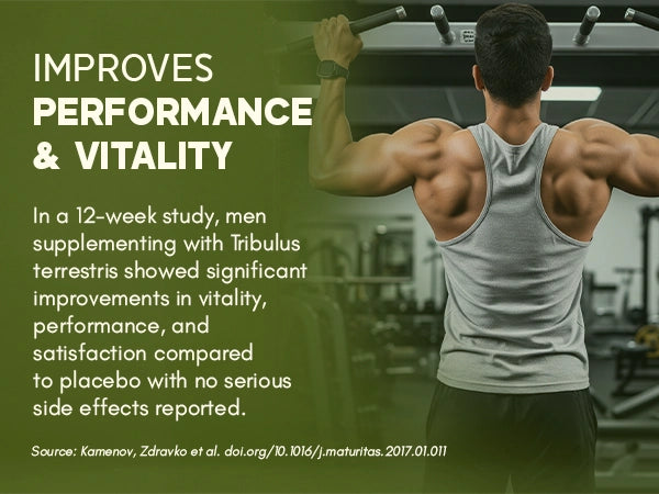Tribulus Terrestris (Gokshura) > 60% Saponins: 1000 mg per serving.