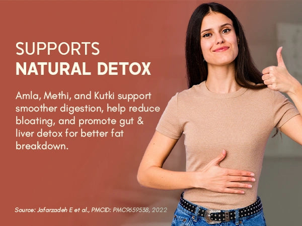 Amla is rich in Vitamin C and antioxidants that support digestion, boost metabolism, and enhance fat breakdown.