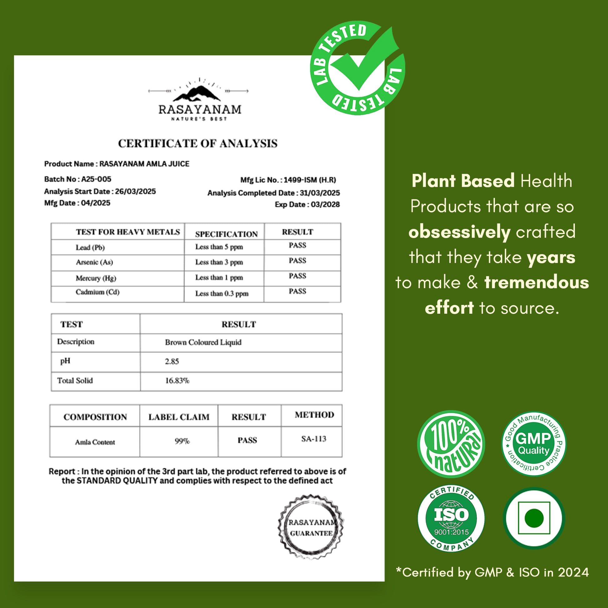 - Purest Amla Juice: Made from premium Francis amla with 2x Vitamin C, cold-pressed to retain maximum nutrients and antioxidants.