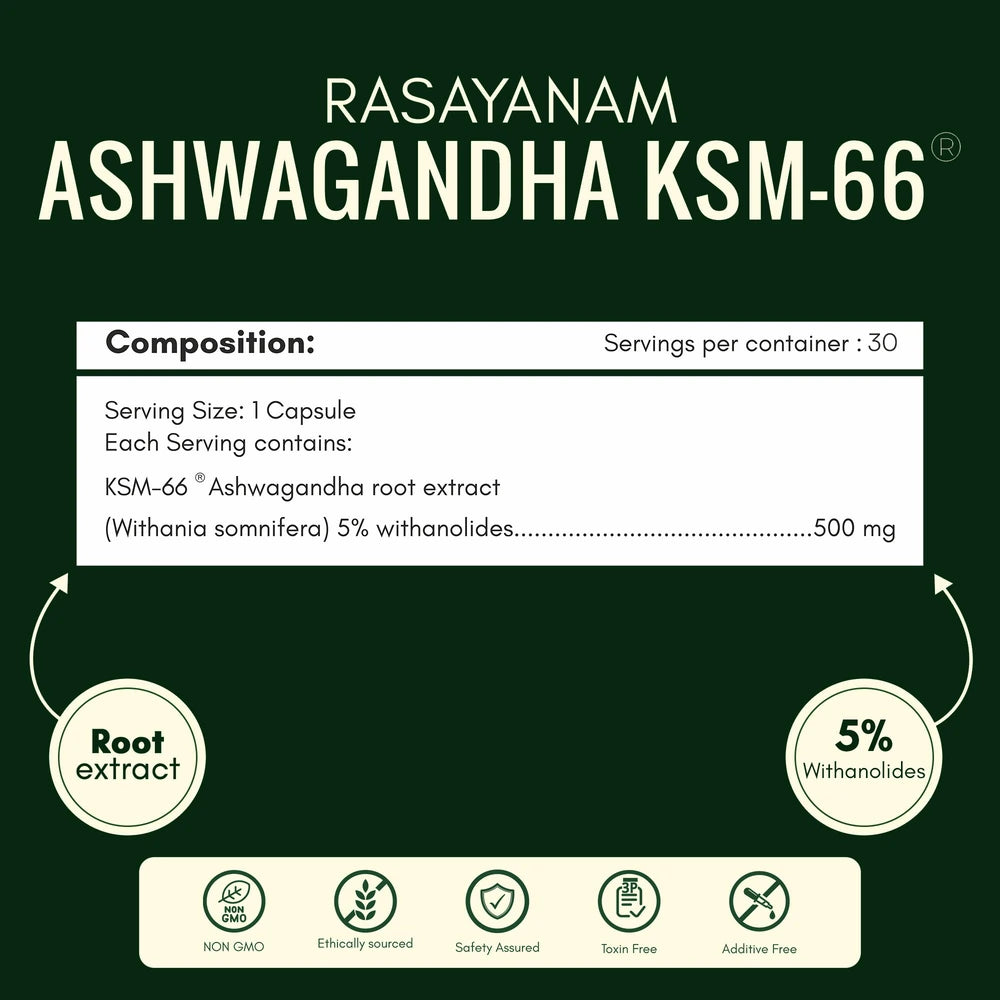 Ashwagandha KSM-66: 500mg per capsule (100% root extract)