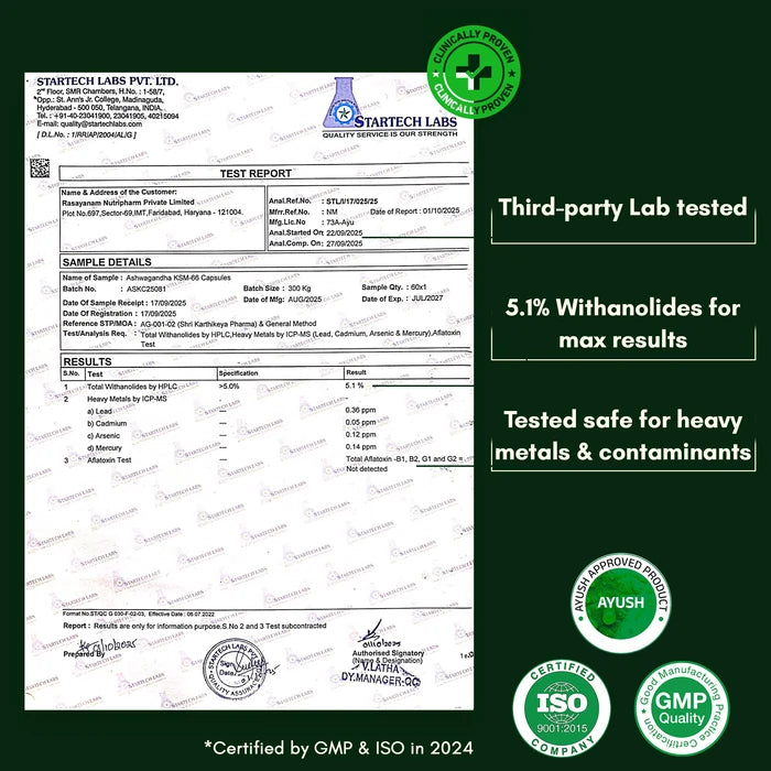 - Clinically Proven Ashwagandha KSM-66: World’s strongest full-spectrum root extract, backed by 14 years of R&D and 24 clinical trials.