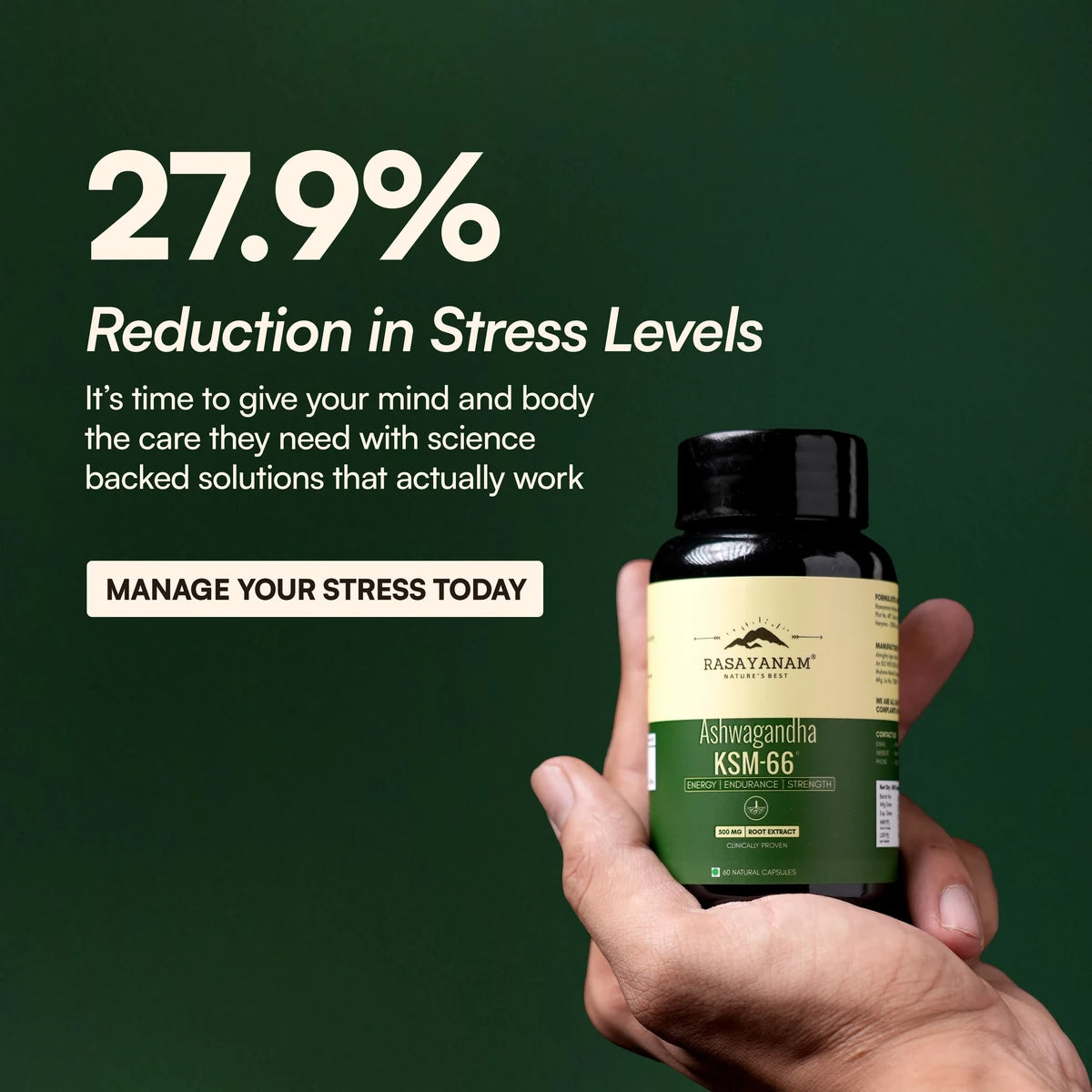 Ashwagandha is clinically proven to lower cortisol levels and reduce stress, while Shilajit helps restore energy balance, supporting restful sleep and recovery.
