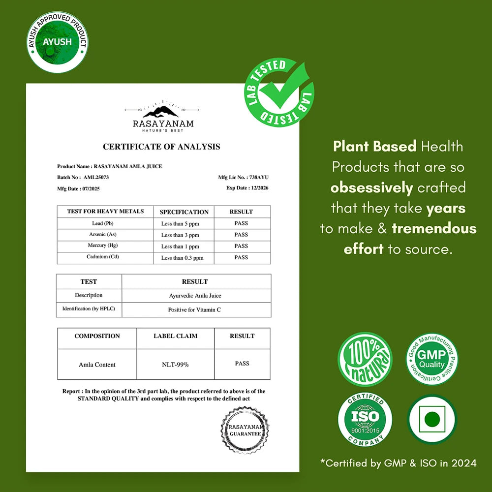 I’ve been using Rasayanam Pure Amla Juice for the past couple of months, and the latest version released in 2025 feels considerably more nutrient-dense. Made with premium-size Francis Amla, it delivers nearly double the Vitamin C capacity and significantly higher antioxidant and fibre content than the older variant