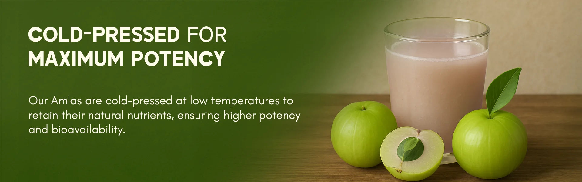 A. All amla juices are not the same. We use only small, fresh amlas from Uttar Pradesh. They're cold-pressed within hours of harvest, not boiled or diluted, so you get more Vitamin C, antioxidants, and natural fibre – with zero added colors or flavors.